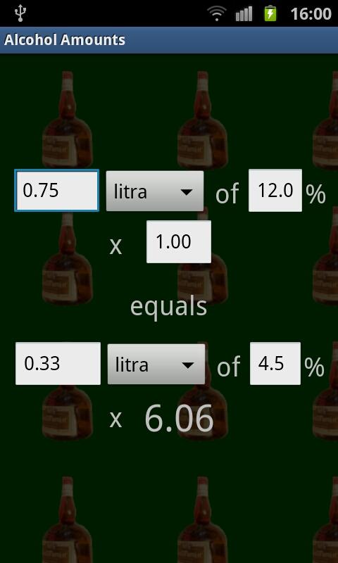 Ever wondered how many beer bottles equals bottle of wine in alcohol amount. Or argued with your friends about exactly how many wine bottles equals whiskey jar. Wonder no more. This app is very easy to use calculator to convert alcohol amounts of different sizes of bottles of different ABV (Alcohol by volume) percents. To compare alcohol dosages in different booze, spirits and drinks.